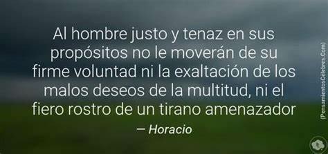 Al hombre justo y tenaz en sus propósitos, no le moverán de su firme voluntad ni la exaltación de los malos deseos de la multitud, ni el fiero rostro de un tirano amenazador.